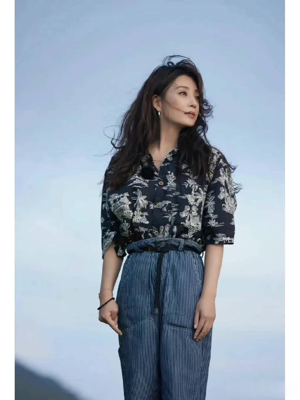 四十多岁的女性在选择穿搭时,无需盲目追逐潮流。以46岁的殷桃为例,她身着灰色T恤、阔腿裤并搭配半扎发型的造型,再次向我们展示了成熟女性的魅力:无需刻意扮嫩,选对穿搭同样能展现洋气、减龄且自带高级感的气质。